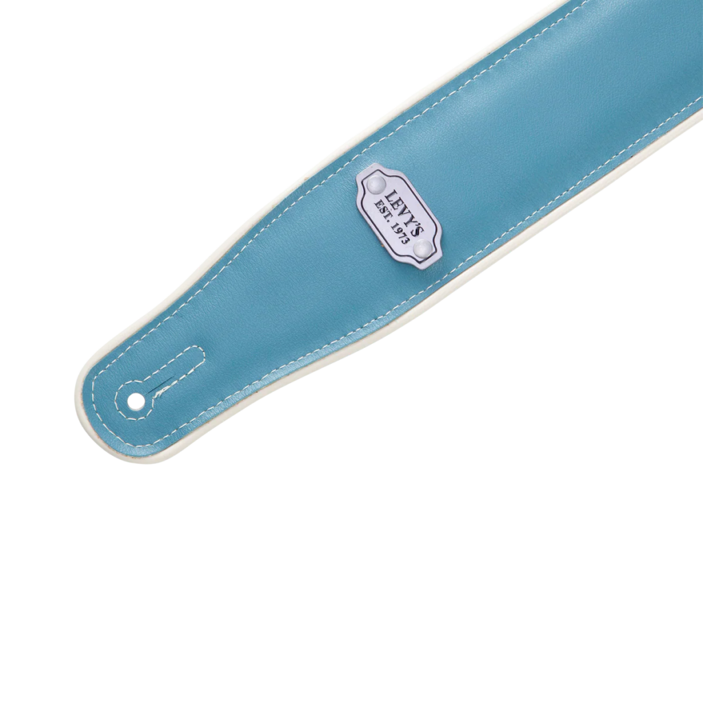 - 雙層雙面乙烯基吉他背帶,飾有奶油色滾邊和金屬狗牌。加厚背帶,奶油色加強縫線。